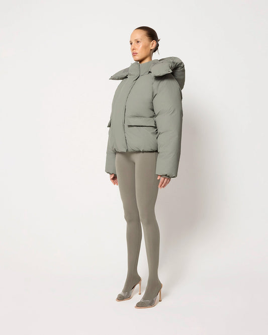 Puffer Jacket Women High Neck Hooded Zipper Design Cotton-Padded Coat