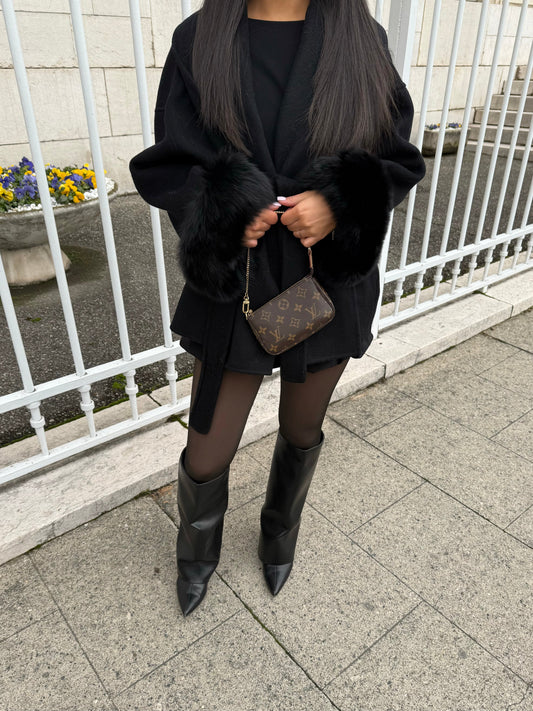 SAVE 66%BLACK WOOL COAT WITH FUR