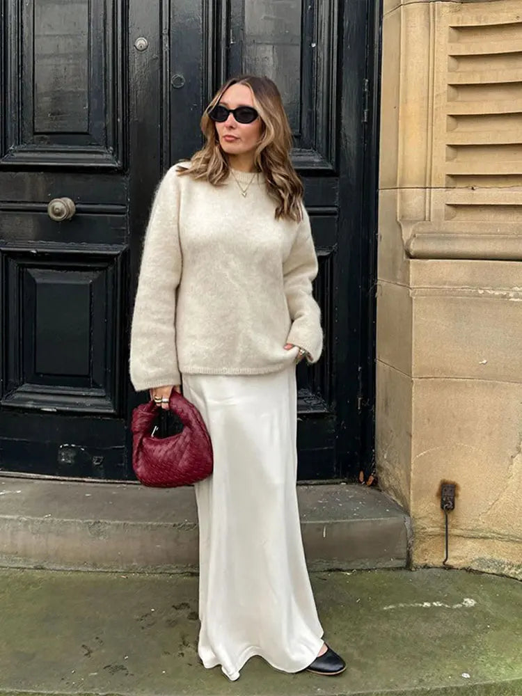 It's Knitwear Season! Soft and Cozy Materials: Feel incredibly comfortable in this knitted sweater that will keep you warm on cold days. Versatile Styling: Easily pair it with jeans, skirts, or leggings for a casual or dressed-up look. Trendy Knit Pattern: The stylish knit pattern adds a touch of luxury and elegance to the sweater.