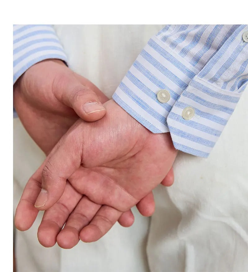 Ensuring high-quality, long-staple fibers are used for both linen and cotton to enhance durability and comfort, our Santino Linen Shirt that offers a more relaxed appearance, that is comfortable and casual yet offers a modern tailored fit for a sleek look while allowing ease of movement.